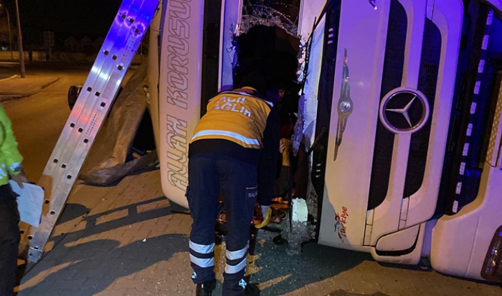 Konya’nın Karatay ilçesinde seyir halinde olan tır virajı alamayarak devrildi. Araç içinde sıkışan sürücü itfaiye ekiplerince bulunduğu yerden kurtarıldı.